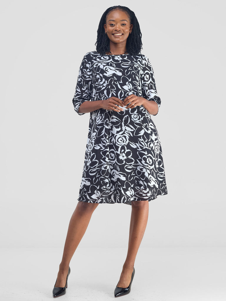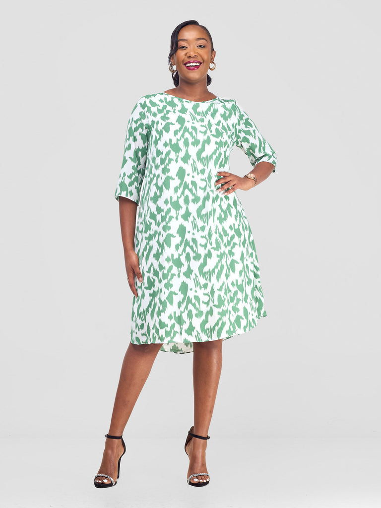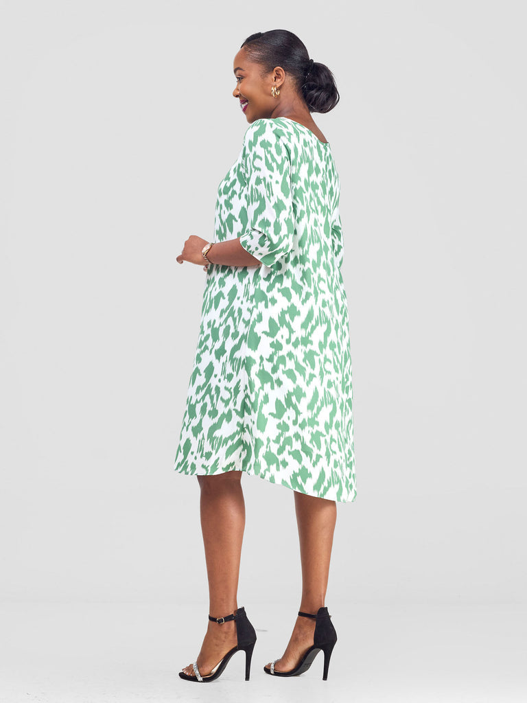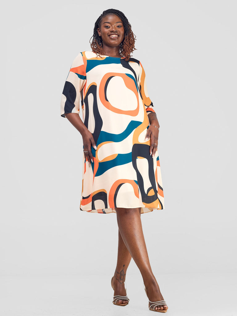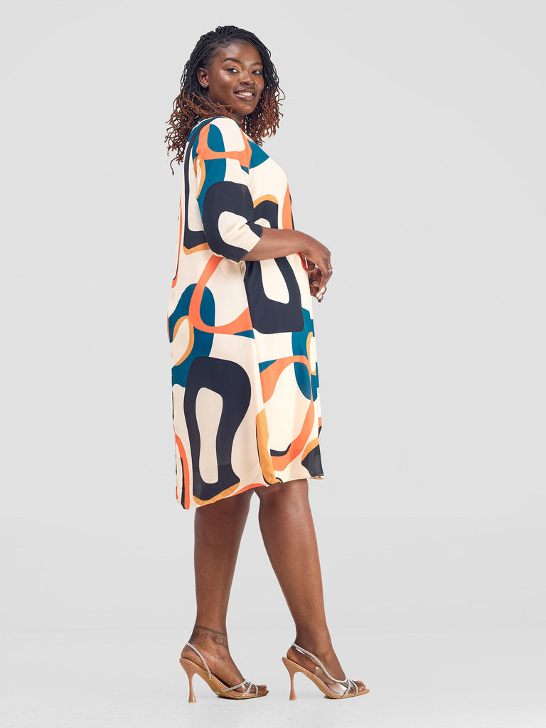 Vivo Ayo Tent Dress - Cream / Blue Print