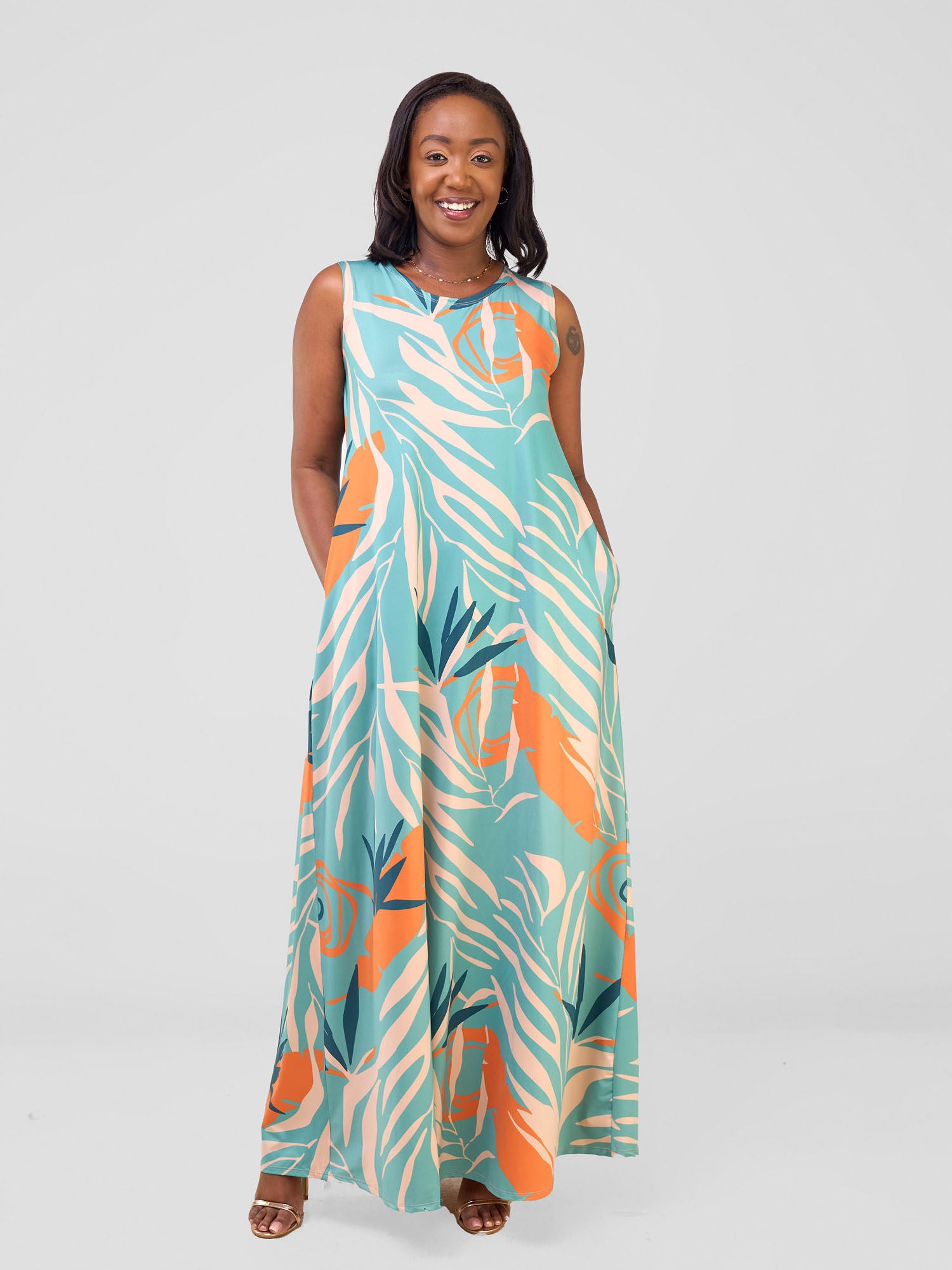 Vivo Fasi Cap Sleeve Tent Dress - Pine