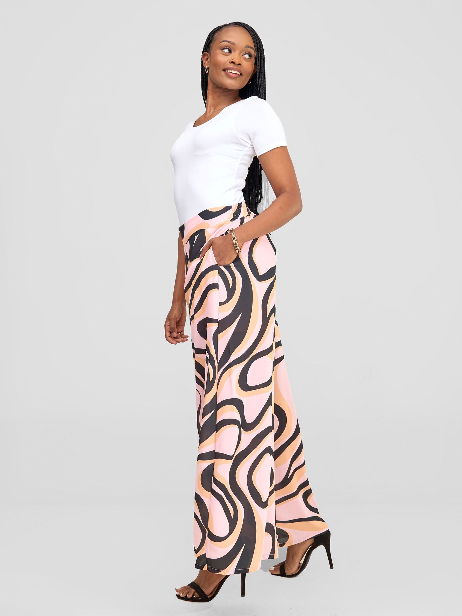 Vivo X Essence Asha Wide Leg Pants With Short Lining - Pink / Black Manda Print