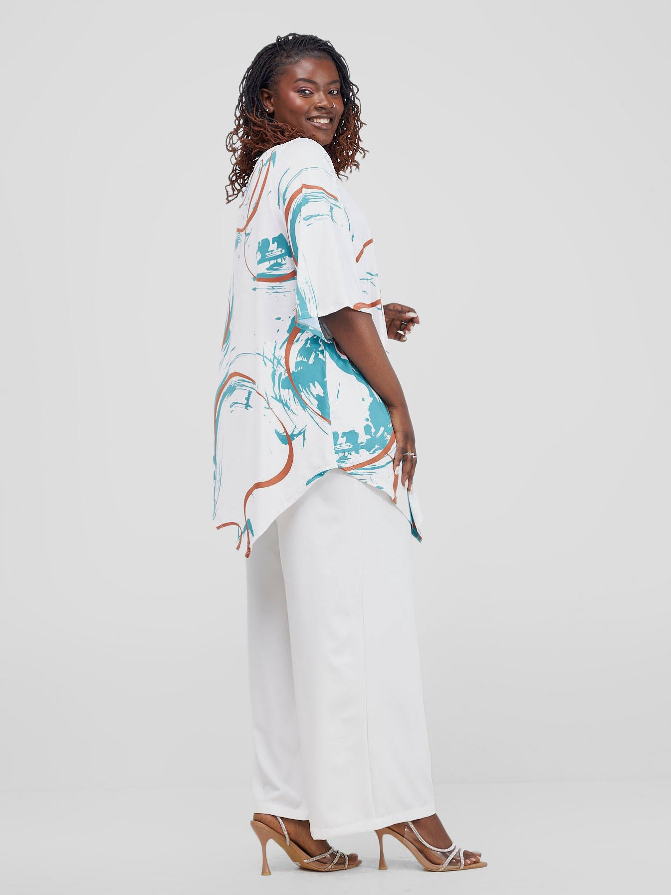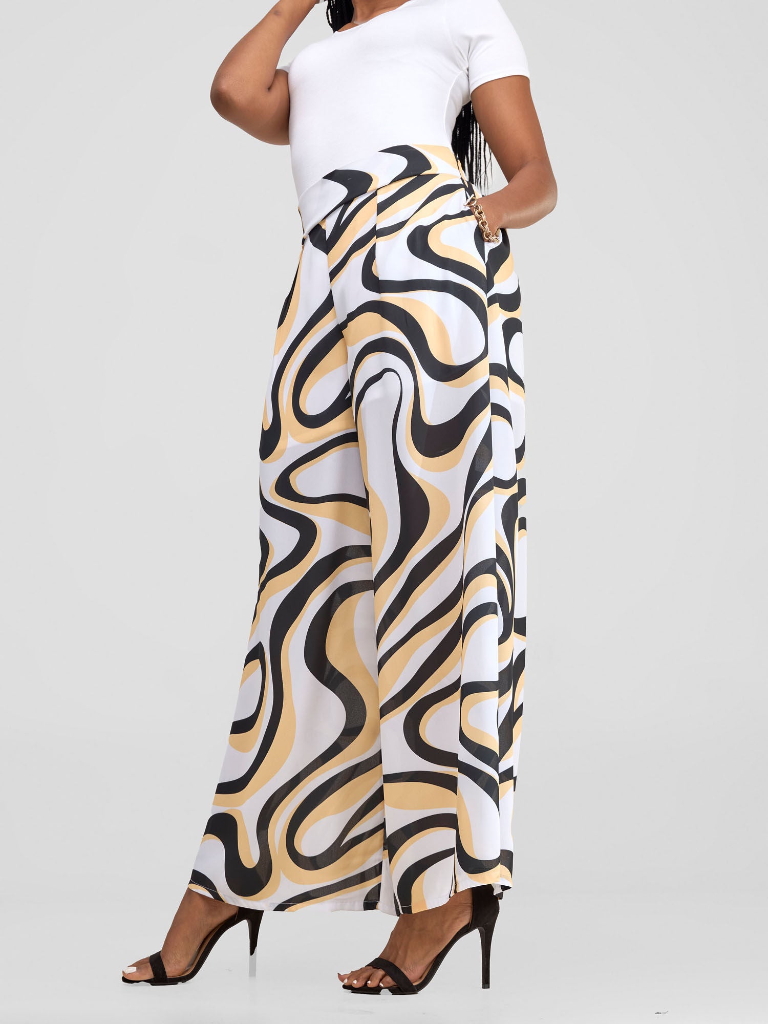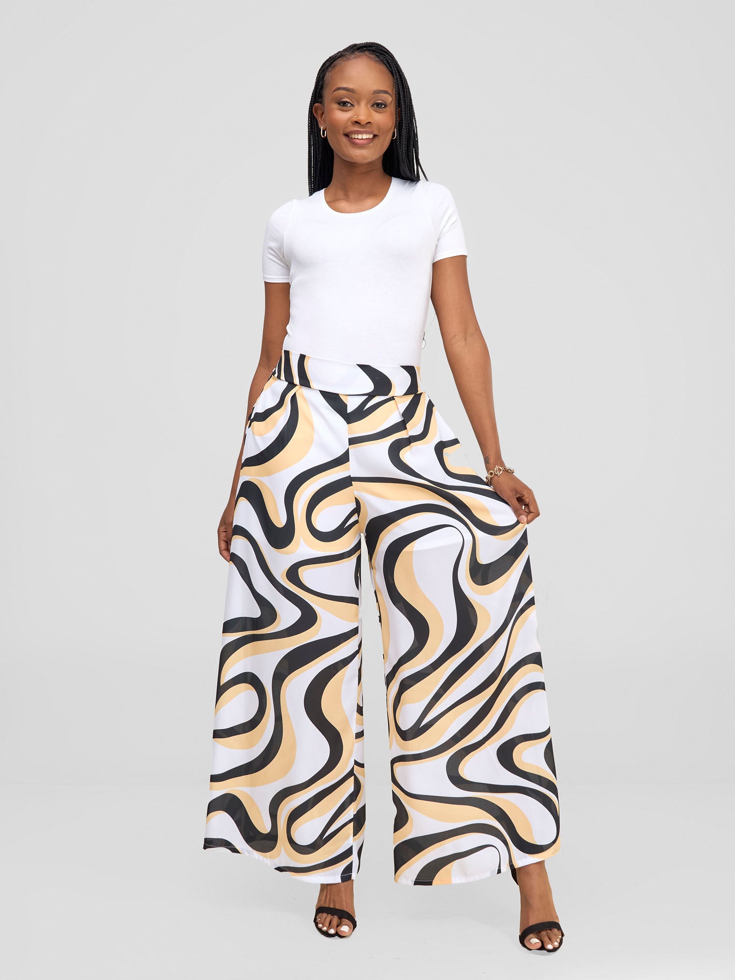 Vivo X Essence Asha Wide Leg Pants With Short Lining - White / Mustard Manda Print