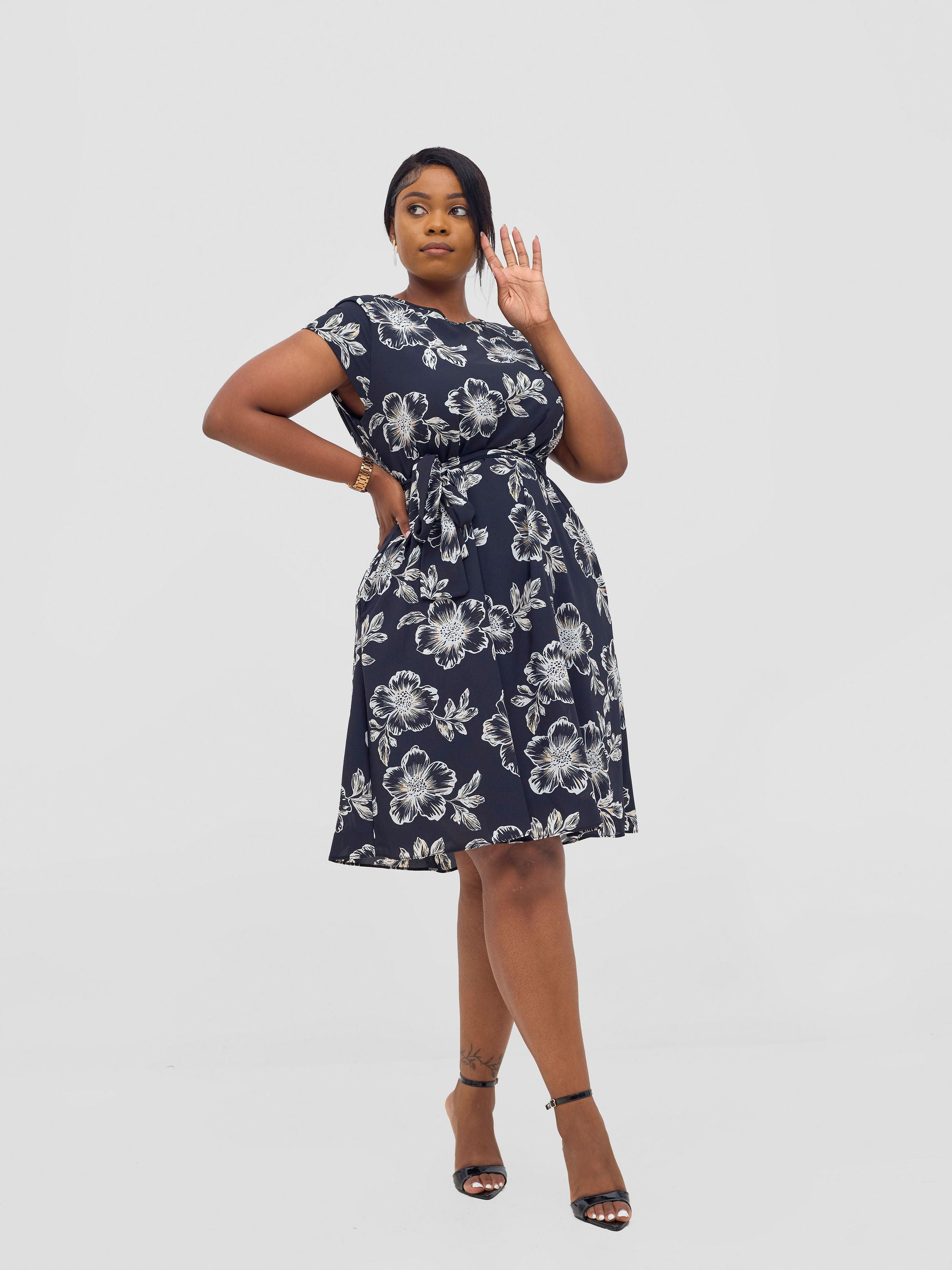 Ruffle Trim Tie Side Wrap Dress - Black