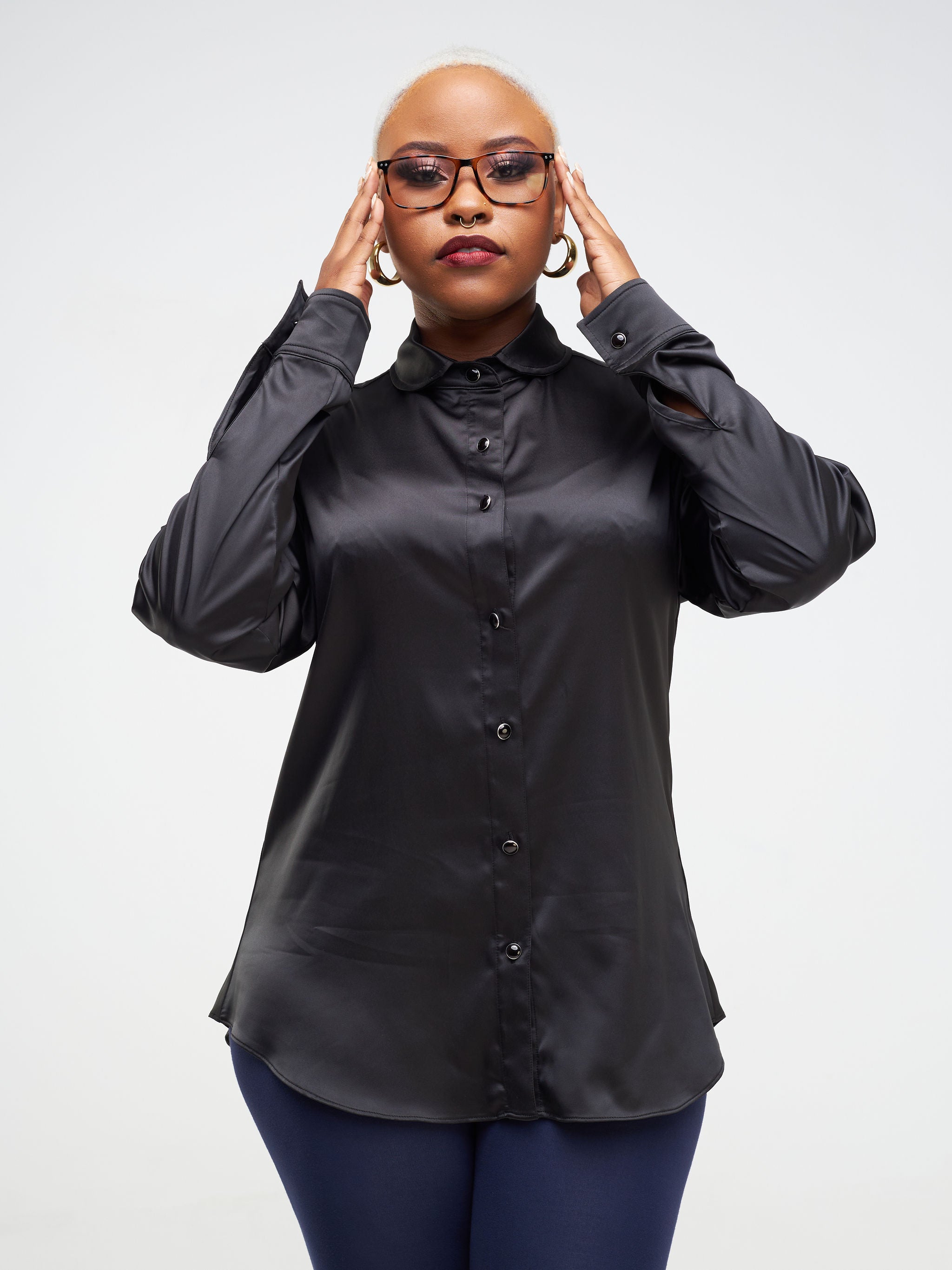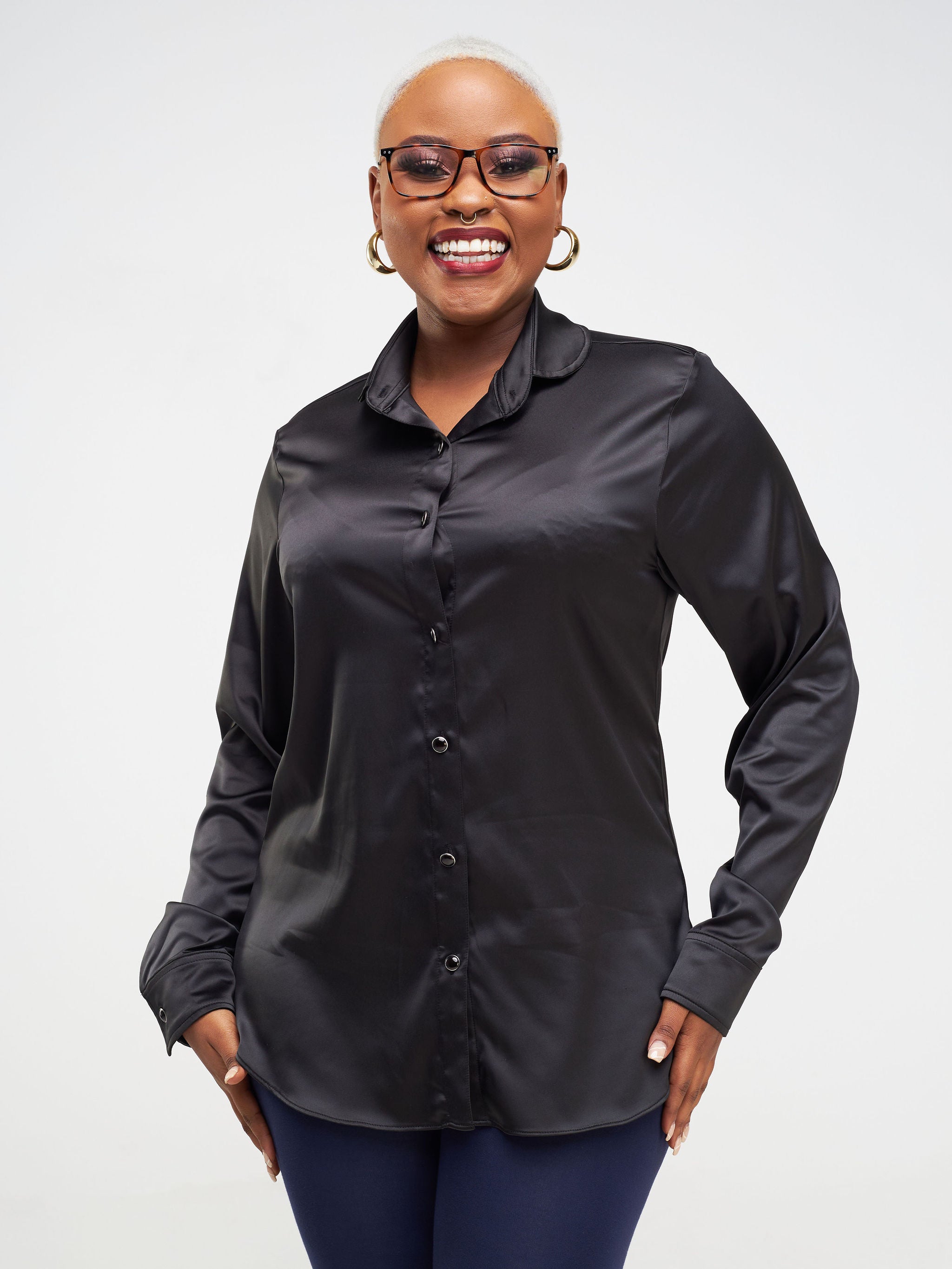 Vivo Neza Satin Long Sleeve Shirt - Black