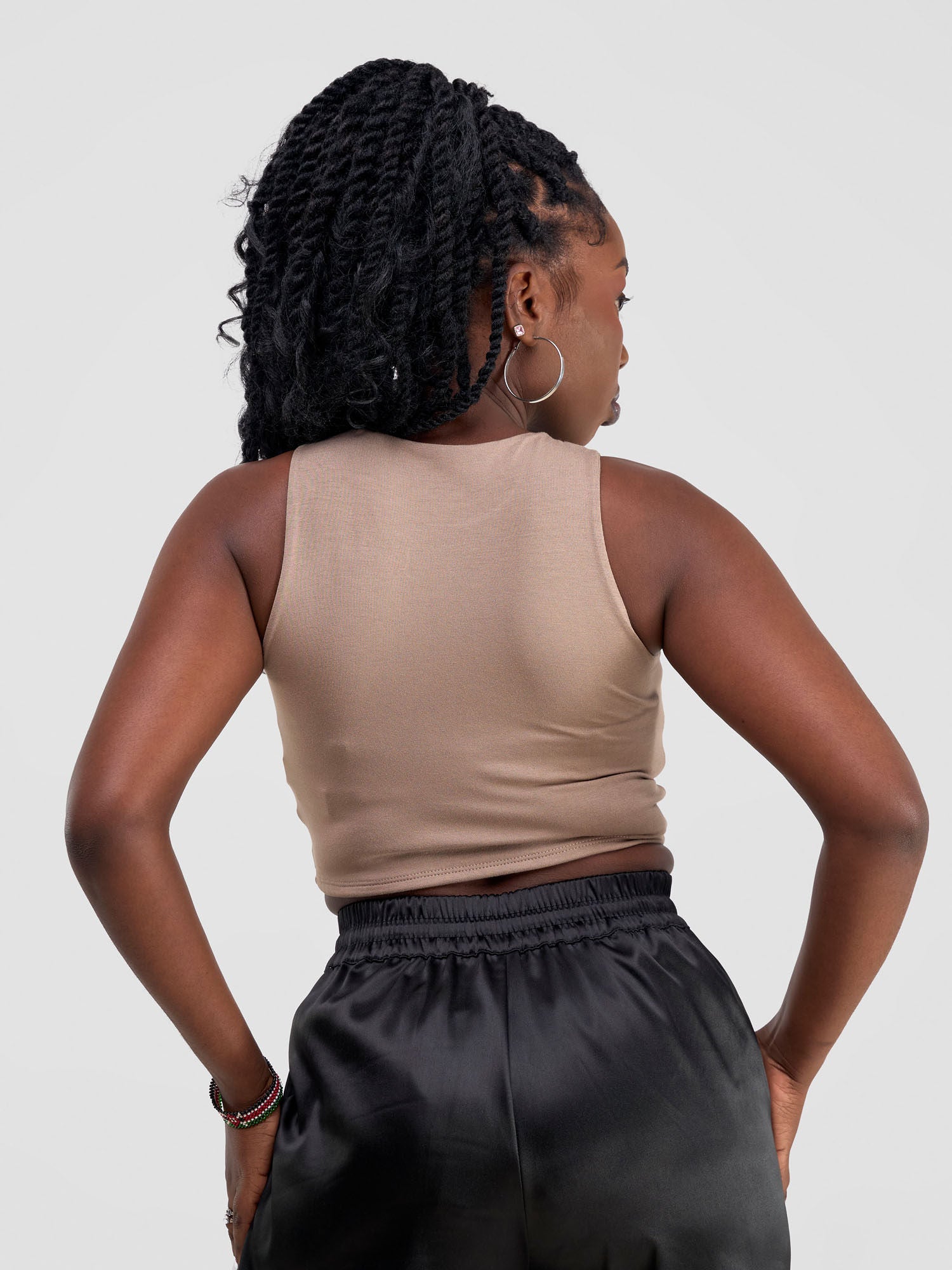 Zoya Basic Short Sleeve Crop Top - Taupe